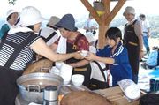 全国棚田百選に選ばれた椹平の棚田を一本松公園から眺め、「棚田ママの会」の方々が作ってくれた芋煮は最高の味でした。 |